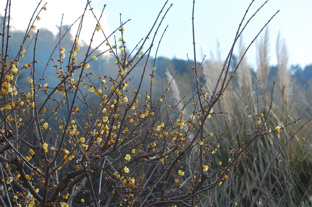 ロウバイとteruさん(パンパスグラス)