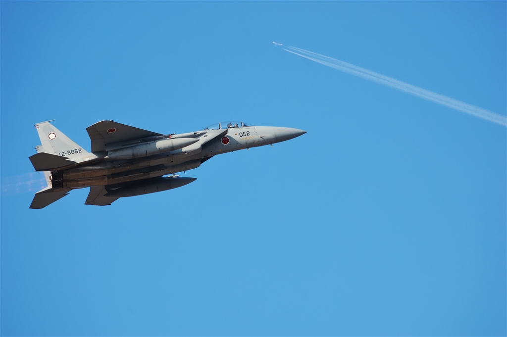 航空機に狙いを定めて 4 上空の機影に合わせたらたまたまアフターバーナー炎まで