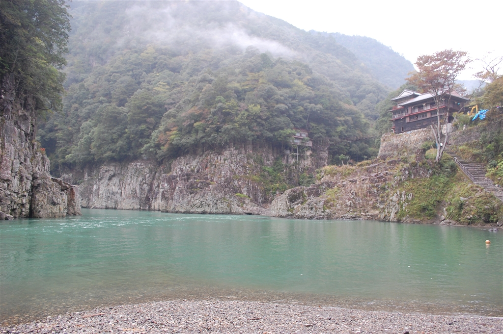 右が本館、左が別館、吊り橋でしか行けないそうです?