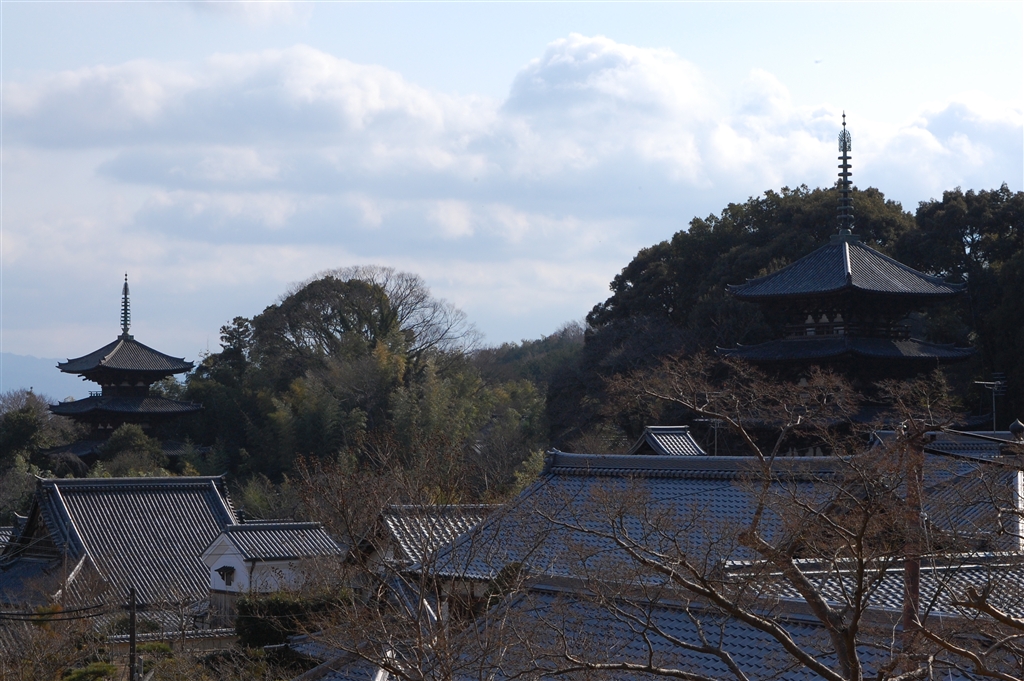 東塔と西塔。残念ながら逆光