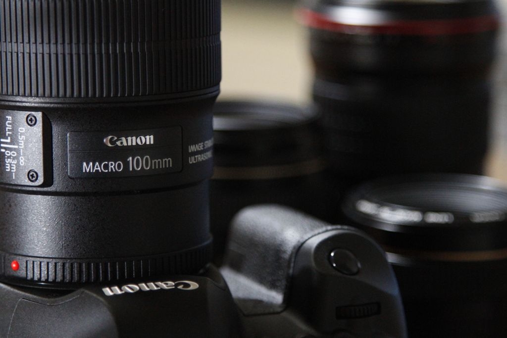 5D2にマクロ 奥に135・85・50 (7D24−105で撮影)