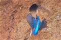 巣穴から出てきた所、嘴に泥が付いています。