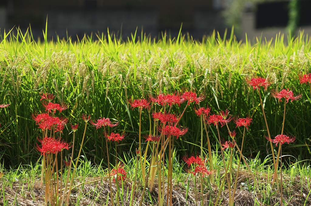 刈入間近の稲と