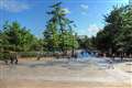 >スポット測光で木陰に露出を合わせれば・・・空の白い雲や白い石畳が飛ぶと思います。