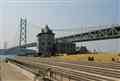 モノクロで撮られた大橋とウインチ。