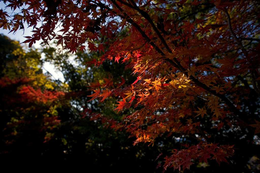木漏れ日差し込んでモミジ華やぐ