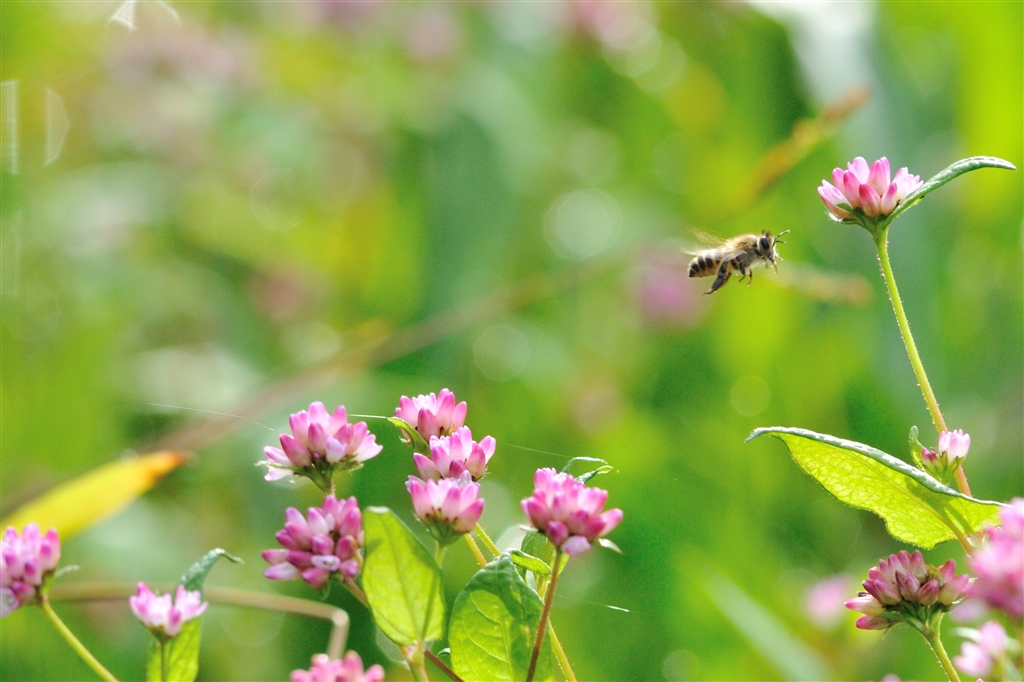 秋の最後、ハナアブさんがミゾソバの蜜を食べにきてます。