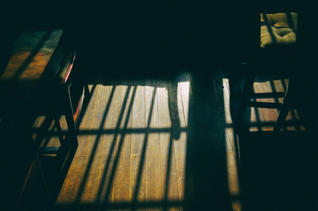 窓からの斜光が床にきれいな陰を造り