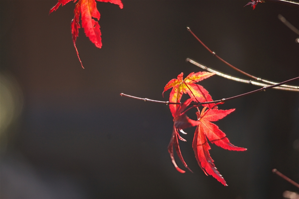 強風に耐えて枝に残るモミジに哀れを催し、