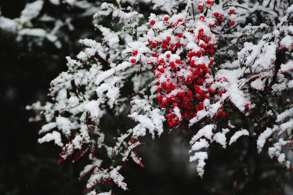 南天に雪