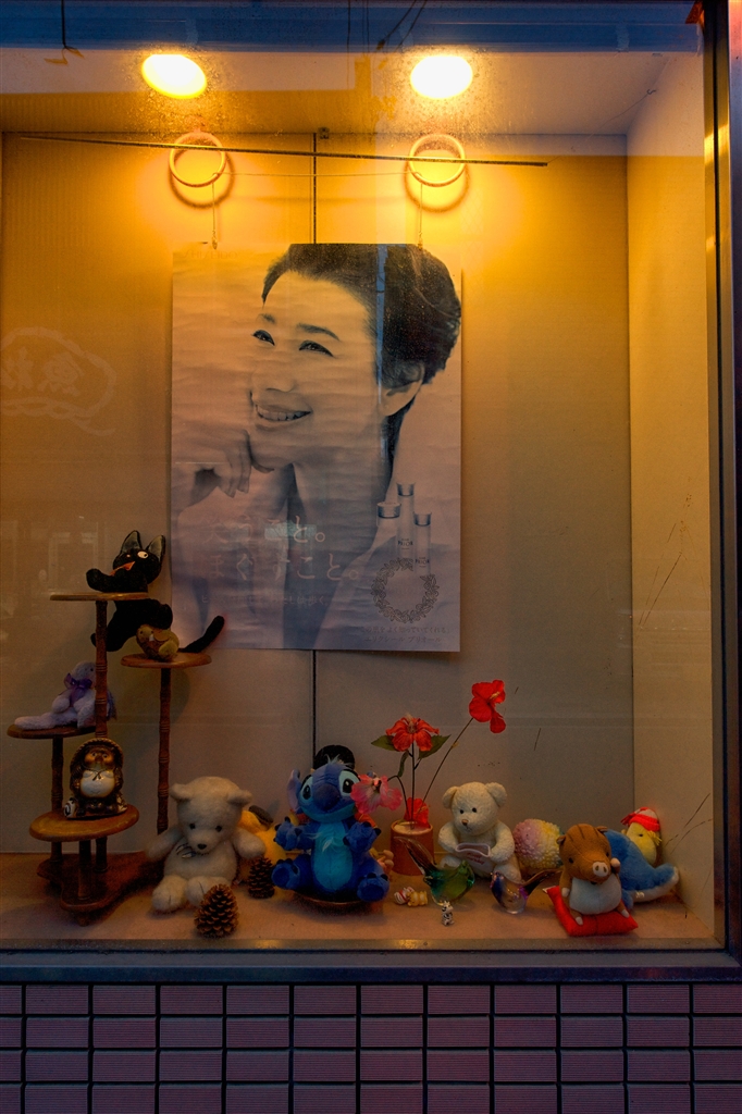 ショーウインドウの色褪せたポスターに郷愁が