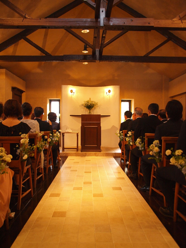 夕方の教会内にて。