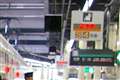 赤い表示灯の「こうや」という文字が格子状に飽和しています。