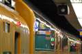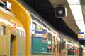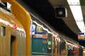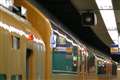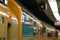 二枚目の写真は、電車の車側灯と信号灯の光が飽和している上に、車両に映りこんでいる光まで飽和しています。
