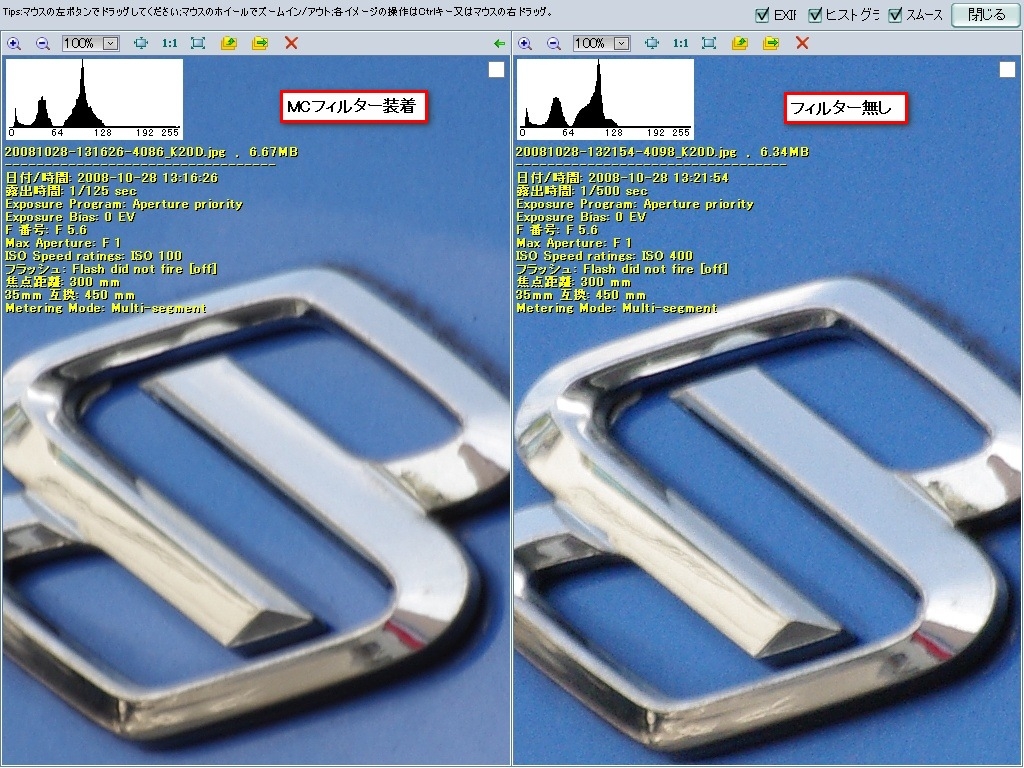 『MCフィルター有無の比較』ペンタックス PENTAX K20D ボディ delphianさんのクチコミ掲示板画像1/4