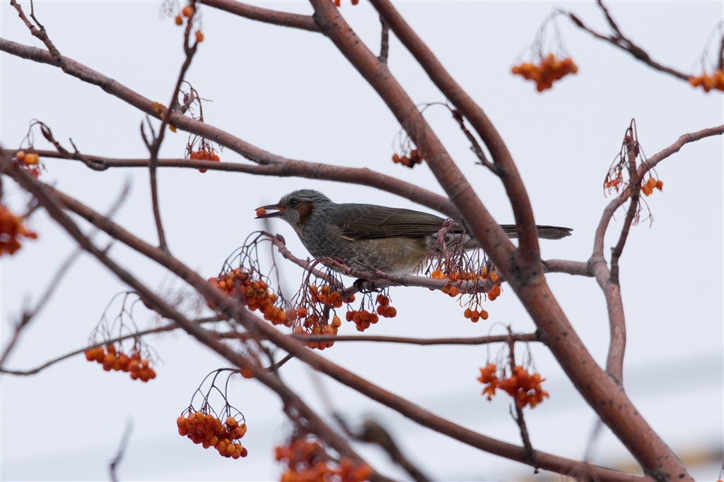 ISO200:ヒヨドリ:ナナカマドの実が干し柿に見えてきます(^_^;)