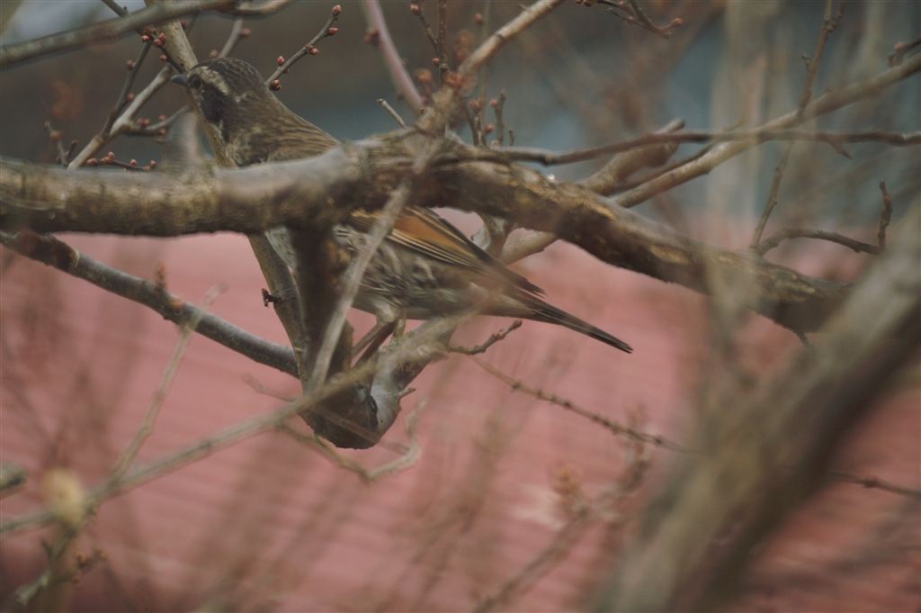 ヒヨドリにしては赤い。顔が見えないので??