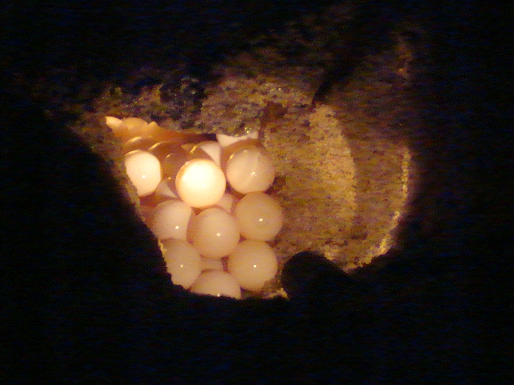 アカウミガメの卵:雨風の中、防水パック入りのコンデジの高ISOで