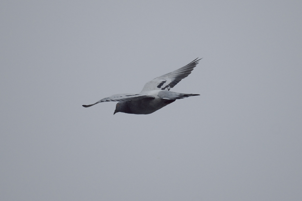 飛んできたハト、背景が無く季節感が無い
