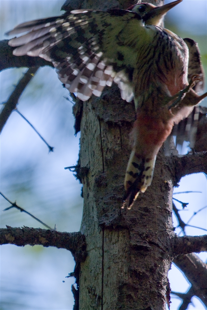 オオアカゲラ♂:トリミング:偶然の一枚、もう少しで全身入ったのに...