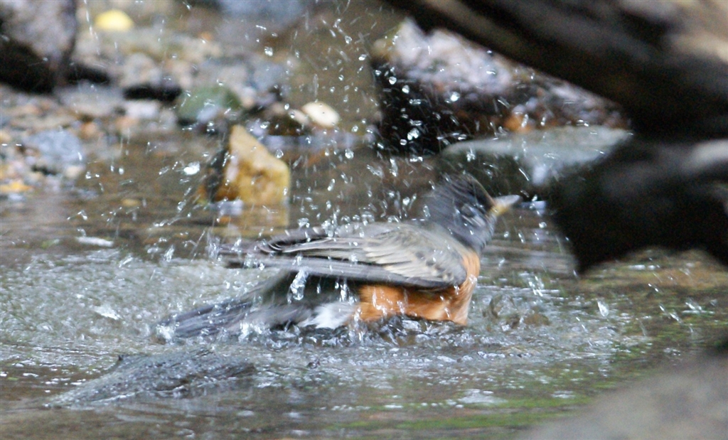 コマツグミが集団で行水。今日は蒸し暑かったので気持ちよさそう。