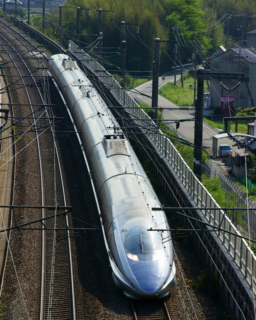 朝陽を浴びた500系