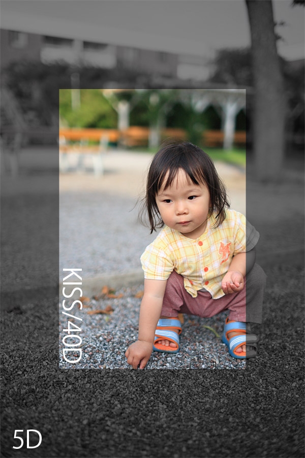 5DはAPS-Cより約2.6倍広く写ります