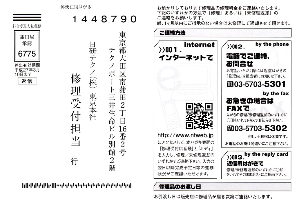 『往復ハガキの裏面』CANON PowerShot S5 IS Analog kidさんのクチコミ掲示板画像2/3
