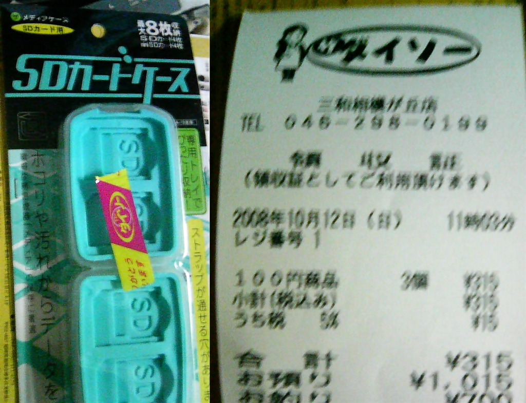 『SDカードケースとレシート』CANON IXY DIGITAL 3000 IS あきぽん2007〜2008さんのクチコミ掲示板画像1/2