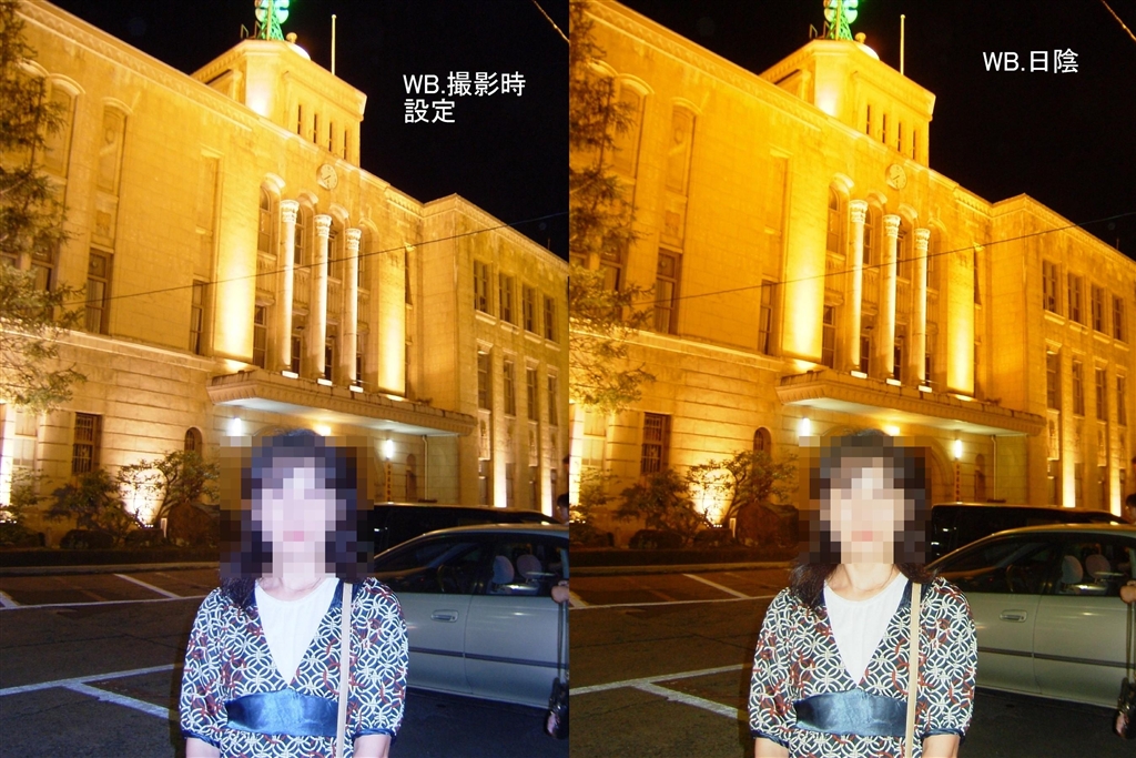 WB、撮影時設定と、補正後