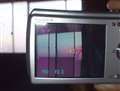 先ほど試しに飼っている猫を撮ってみたのですが、窓際にいる猫を撮ろうとシャッターを半押しにしたところ、液晶モニター全体に紫っぽい帯が出ました