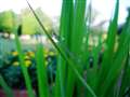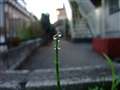 稲の葉の先端にについた朝露のボケが 円形なのも