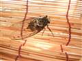 セミがすだれの内側にとまりました 暑かったのでしょう