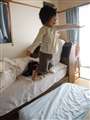 ベッドからジャンプした瞬間です
