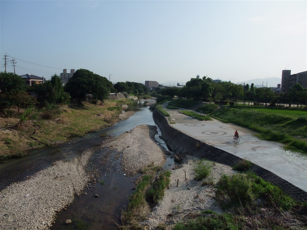 水害の跡。川の中の形が変わってます。