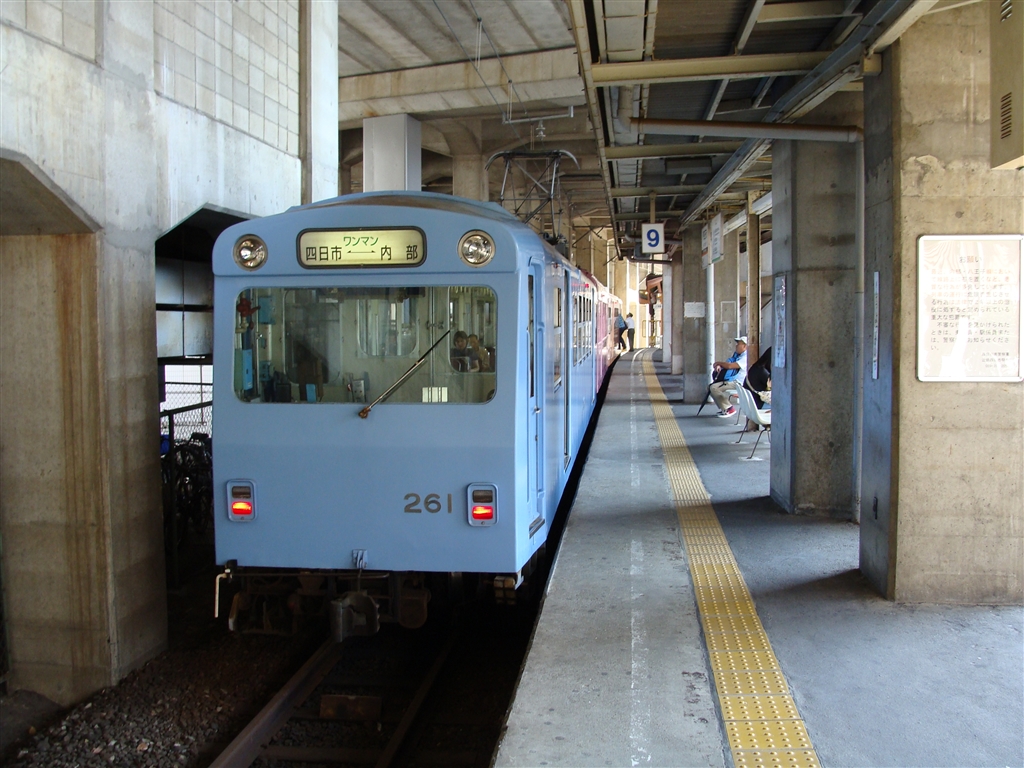 マッチ箱のような電車。(四日市から内部へ向かうナローゲージ)