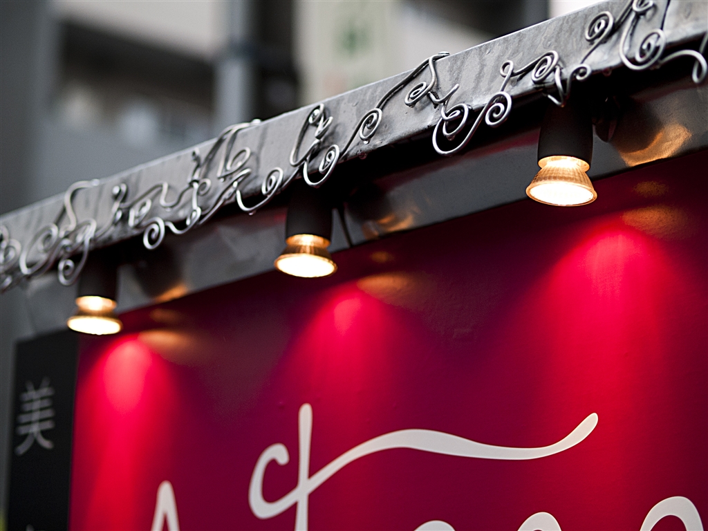 看板の赤も鮮やかに