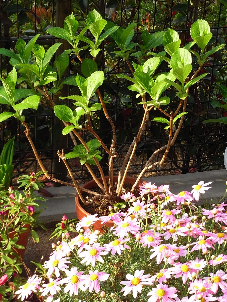 奥では紫陽花の葉が育ち盛り
