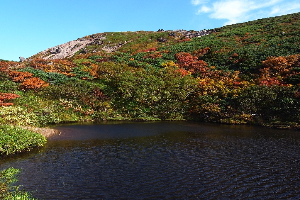 山頂直下の鏡沼から見上げる大岳