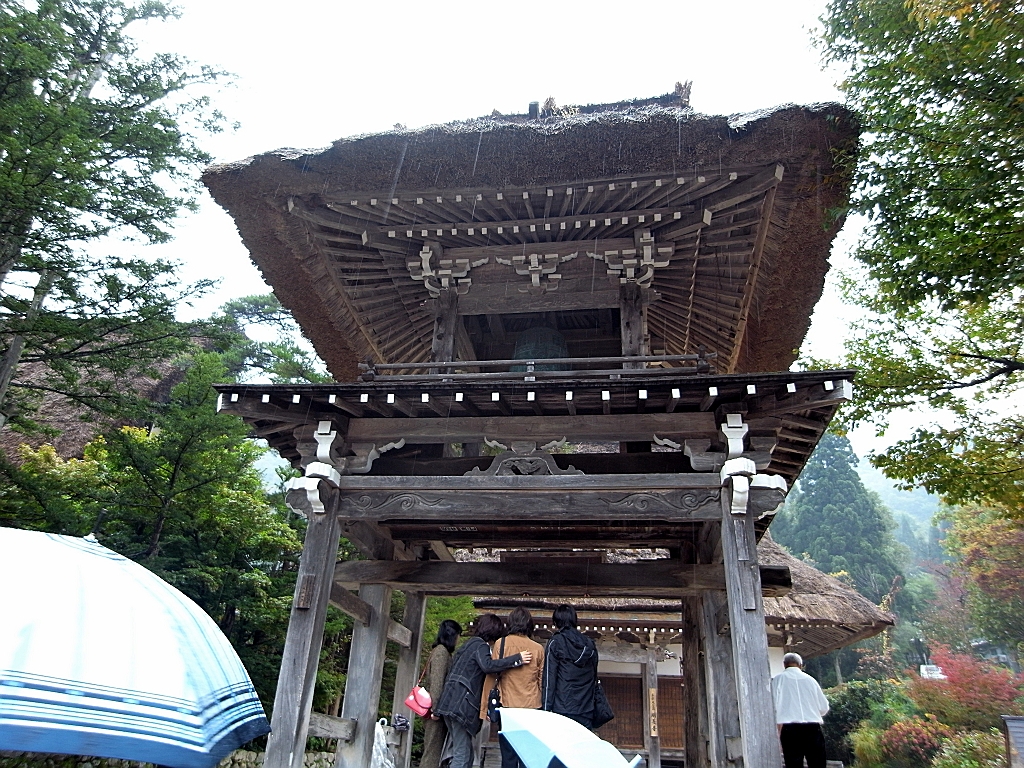 白川郷ではお寺の屋根までカヤ葺きです