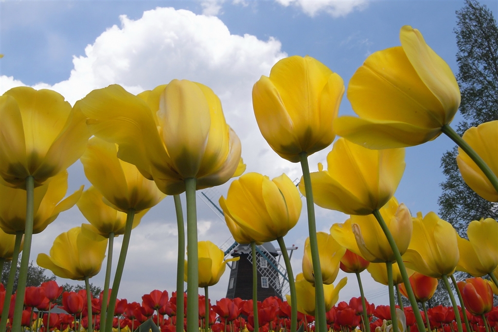 あけぼの山農業公園 風車とチューリップ