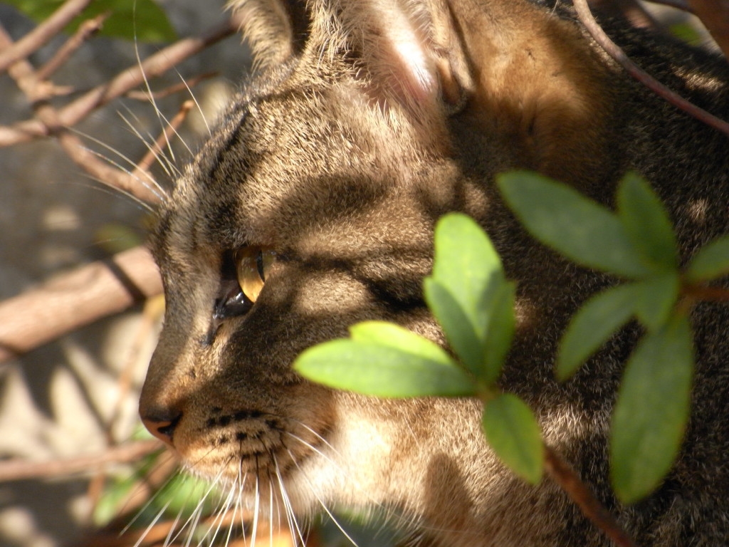 植え込みに隠れエモノを狙うハセガワくん