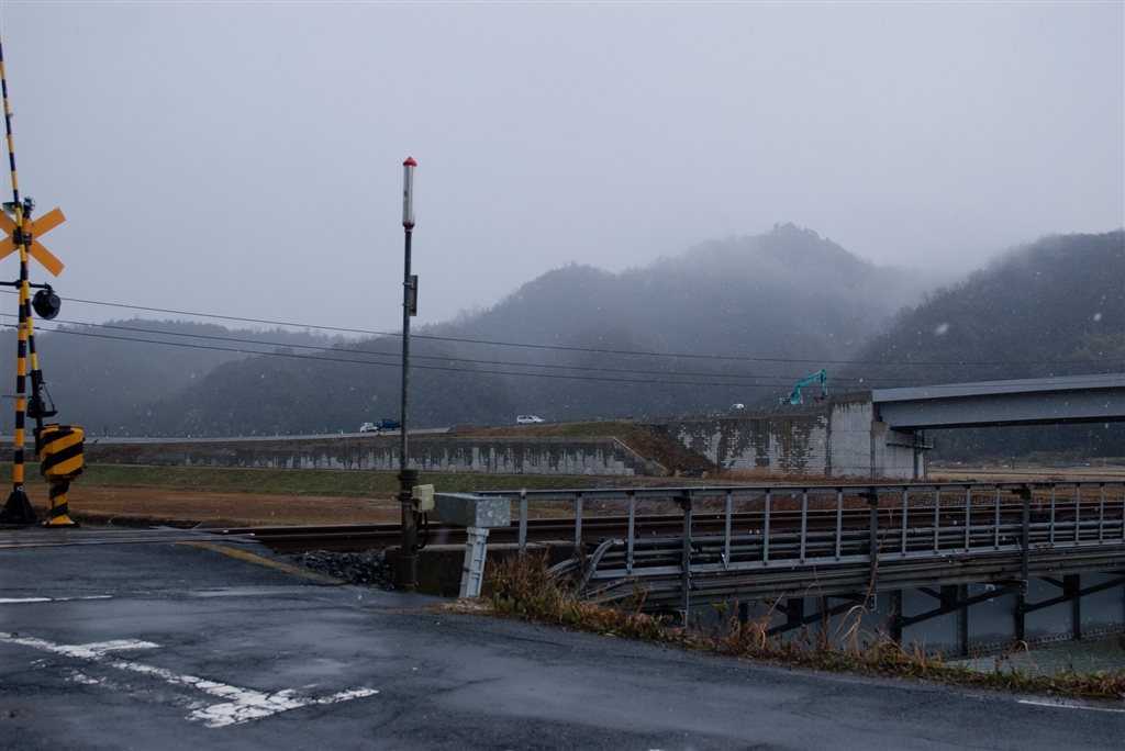 踏み切り向うのバイバス乗り口辺りの工事。