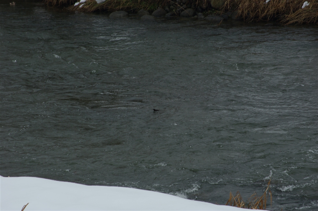 寒中水泳をするカワガラス、カメラも寒さで少しブレるような DAL50-200mm
