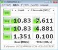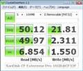 CrystalDiskMarkのベンチマークスコアは添付画像の有様でして、本来どの程度のスピードが出るものか