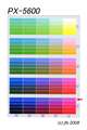 サンプルチャートをご覧になれば一目瞭然ですがマゼンタ(5600サンプルで赤い←が付いている色が純色のM)の彩度が上がり、これに伴い紫から青への爽やかさも増しています。通常このままだと4000PXのように純粋な青にマゼンタが乗るのですがその影響がLCCSにより最小限に押さえられています。