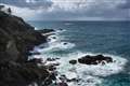 波しぶきは岩にぶつかって白い、という部分と太陽光を浴びて輝いている部分とあることでしょう。