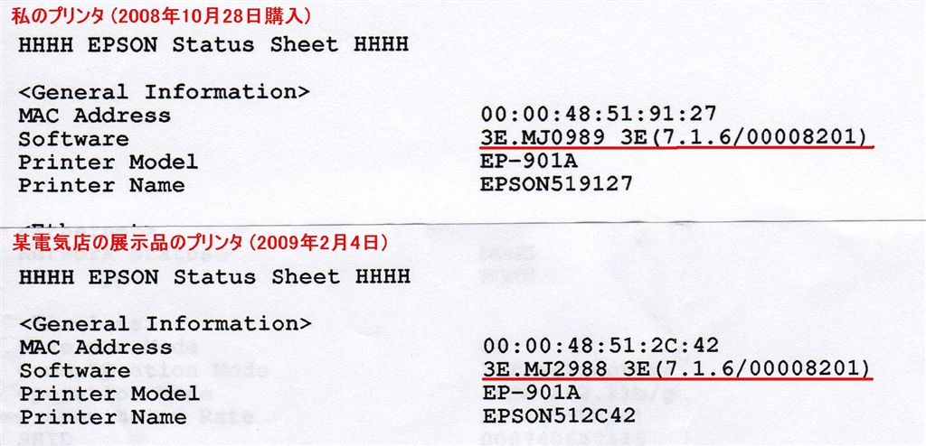 『ファームウェアのバージョン比較』EPSON マルチフォトカラリオ EP-901A zawax2さんのクチコミ掲示板画像1/1