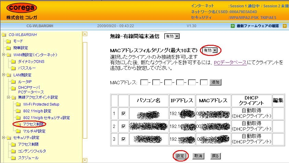 『MACアドレスフィルタリング』COREGA CG-WLBARGNH-U ikuigaさんのクチコミ掲示板画像1/1