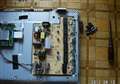 左の黒い箱には取り替えたコンデンサーが入っています。